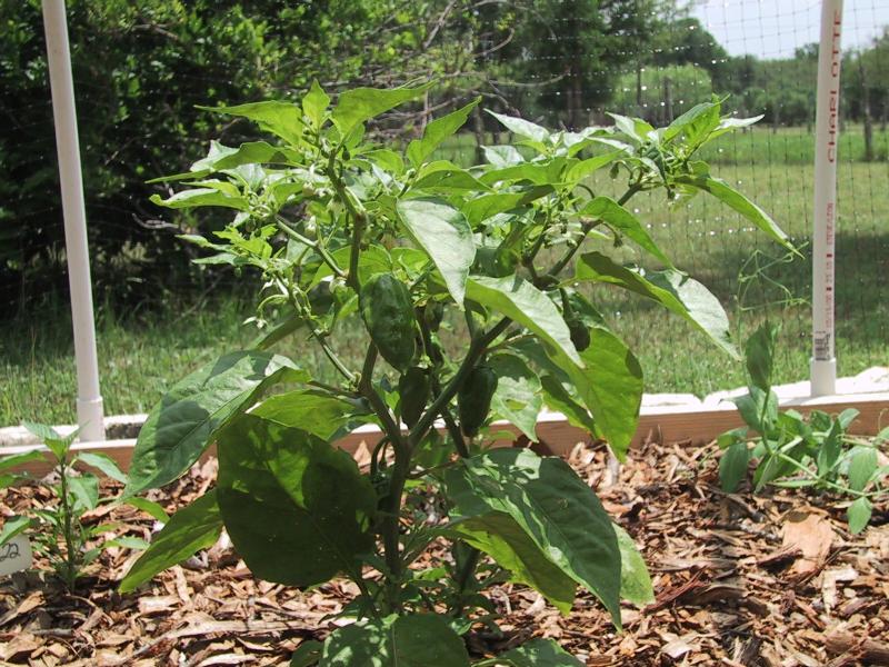 Debra planted radishes, carrots, peas, cucumbers, several varieties of tomatoes and peppers (including habaƱero, picture at right), and several varieties of basil. The radishes are up and ready to eat. Yum! I'm ambivalent about the tomatoes, but am anxiously awaiting the cucumbers, peas, carrots, and peppers.